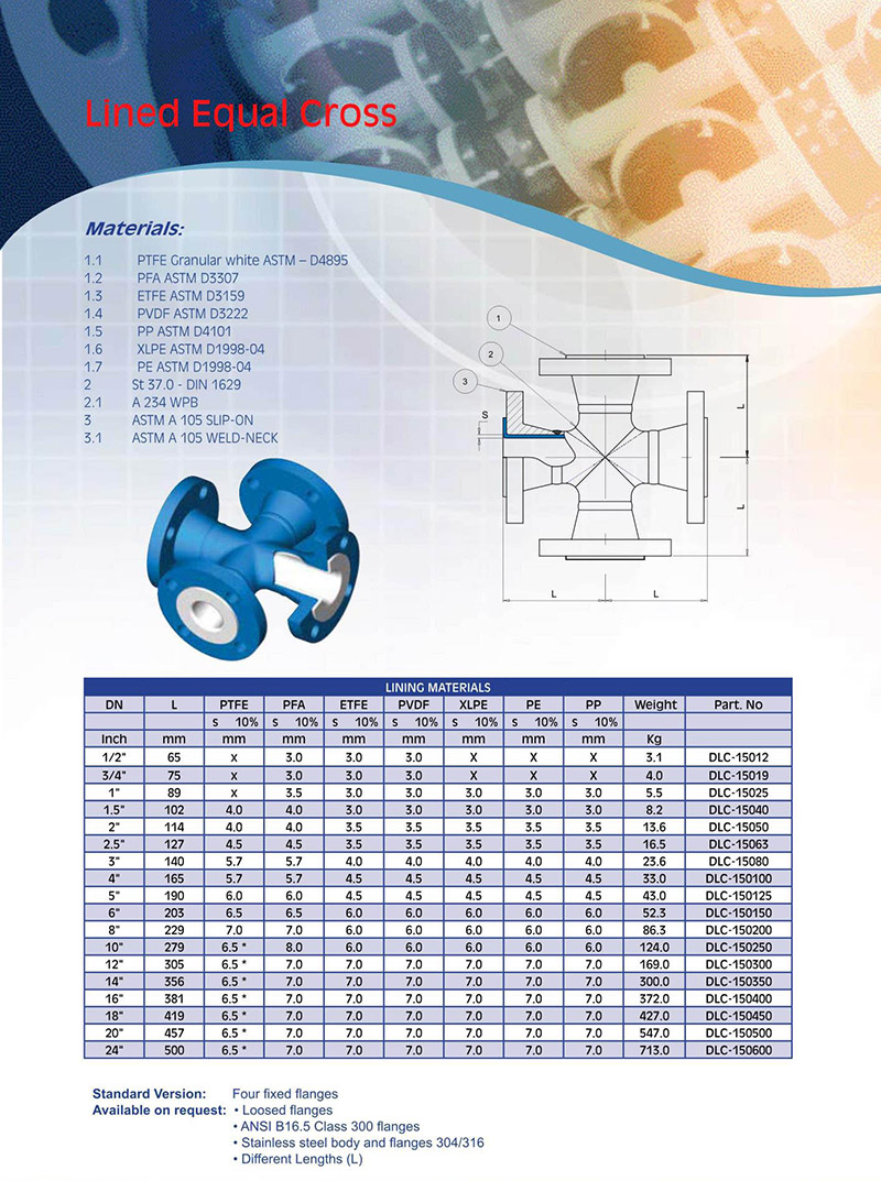 鋼襯PTFE、PFA四通